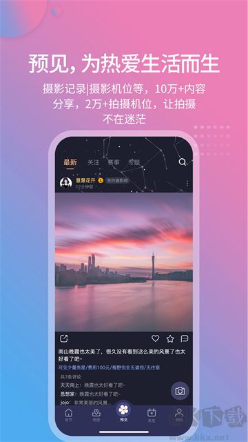 能预测朝霞、晚霞、云海、雾凇、彩虹等多达16种特殊景观,不错过每一处美景;